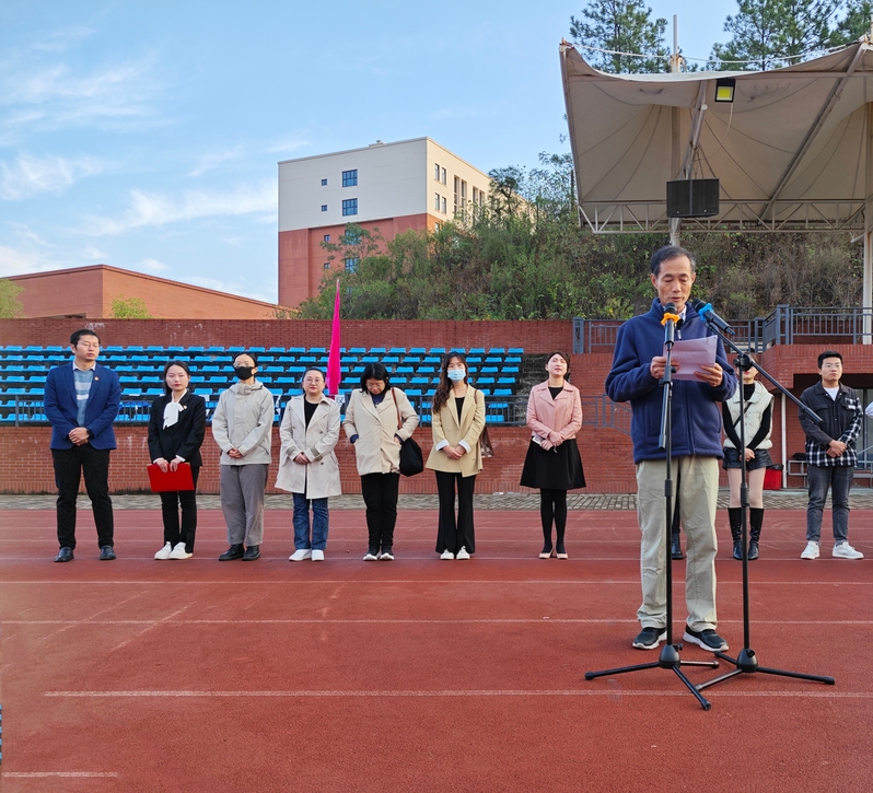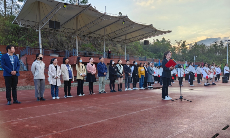扬雄风,挺傲骨,步履铿锵。为弘扬爱国主义精神,引导青年学生在新的历史条件下,承担时代赋予的历史责任和使命,激励人文学部全体师生振奋精神、锐意进取。乐鱼(中国)官方人文学部于11月6日早上7点在风雨操场举行以“担当民族复兴重任,谱写青春绚丽华章”为主题的升旗仪式,莅临本次升旗仪式的人员有人文学部主任熊子延、人文学部党总支副书记汪玉宝、人文学部团总支副书记胡文玉、学部专任教师代表邓薇薇和袁梦亚老师、人文学部全体辅导员及人文学部行政办、教学办老师。