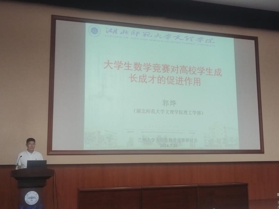 2024年全国大学生数学竞赛暑期研讨会于2024年7月18日至22日在甘肃省兰州市举行,本次会议由中国数学会和全国大学生数学竞赛工作组主办,兰州大学承办,兰州大学数学与统计学院和甘肃省数学会协办。乐鱼(中国)数理通识教研室主任、第十五届大学生数学竞赛黄石地区负责人、第十五届大学生数学竞赛优秀组织者郭烨老师应邀参加会议。