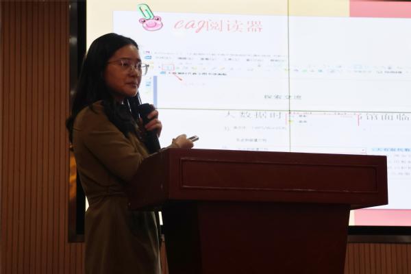随后,中国知网讲师吴茜进行了以《提升信息素养,高效利用数字资源》为题的专题讲座,对中国知网的高效检索技巧和方法进行讲解,列举利用知网进行课程学习的实例,让在座的同学们懂得了作为读者该如何高效利用数字资源。