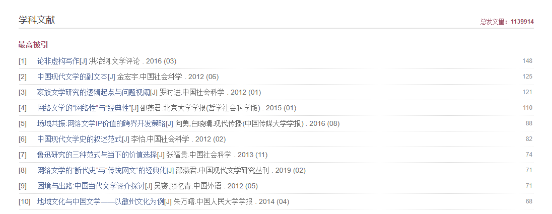 检索参考文献里含检索词的文献。支持参考文献检索的资源类型包括:期刊、会议、学位论文、年鉴、辑刊。