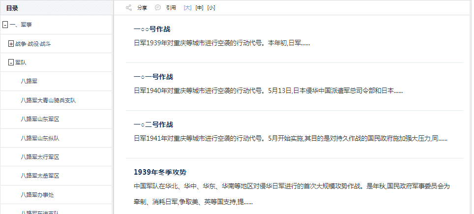 如图5.8.7.2所示,左侧展示工具书的目录,右侧展示已选目录节点的内容,点击,可以展开下级内容,点击
