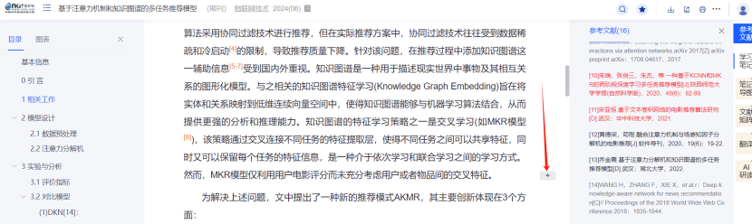 (5) 全新升级文献知网节,优化页面布局,首屏揭示节点文献的内容特征及可读性,构建以单篇文献为节点的世界知识网络,刻画以节点文献为中心的主题发展脉络,满足用户对选定文献全面感知及主题扩展的需求。