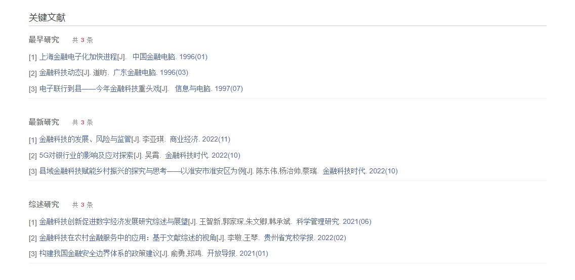 大部分分组项的内容按文献量排序,部分分组项采用特有的排序标准,分组同时进行权威性推荐。