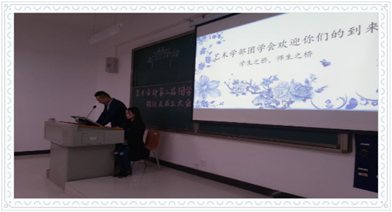 2017年1019日晚上七点,由艺术学部组织的第二届团学会聘任大会暨成立大会于2B304教室隆重举行。届时,学校后勤部姚主任、学校学工部副部长兼学部副主任李老师、艺术学部办工办主任陈老师莅临此次会议并发表了重要讲话。之外,第一届团学会主席汪琪学姐出席并分享了自己的工作经验和感想。同时参加本次会议的不仅有艺术学部整个学生会团体还有各班班委。