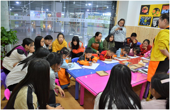 童心童话幼儿园开设了美术、手工、音乐、舞蹈等课程。走进里面,各种新颖的室内装饰目接不暇,小朋友在老师的指导下做着手工、跳着舞 ;幼儿园老师们积极邀请同学们和小朋友互动、给小朋友上课、教小朋友画画,在活动中,同学们与小朋友们拉近了彼此的关系。