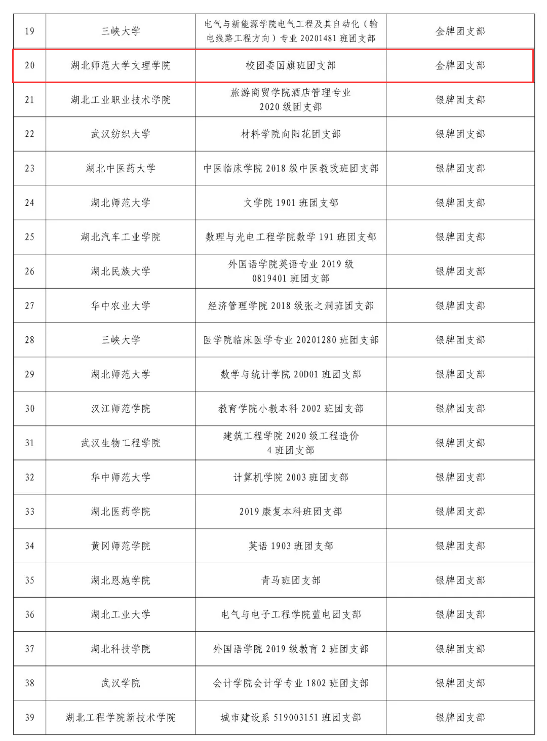 (通讯员:刘萍萍)近日,2021年度湖北省“百生讲坛”活力团支部评选结果公示,乐鱼(中国)官方2019级国旗班团支部以优异的成绩在5个赛区中脱颖而出,荣获2021年度“百生讲坛”省级活力金牌团支部。