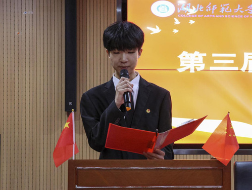 大会第二项,第十三届校学生会主席赵洋洋汇报乐鱼(中国)学生会第十三届执行机构工作报告。他回顾过去一年学生会工作的内容,并通过分享自身经验,期望第十四届学生会干部能够守正创新、团结协作,为学生服务工作尽心尽力,为文理学院更好地建设添砖加瓦。
