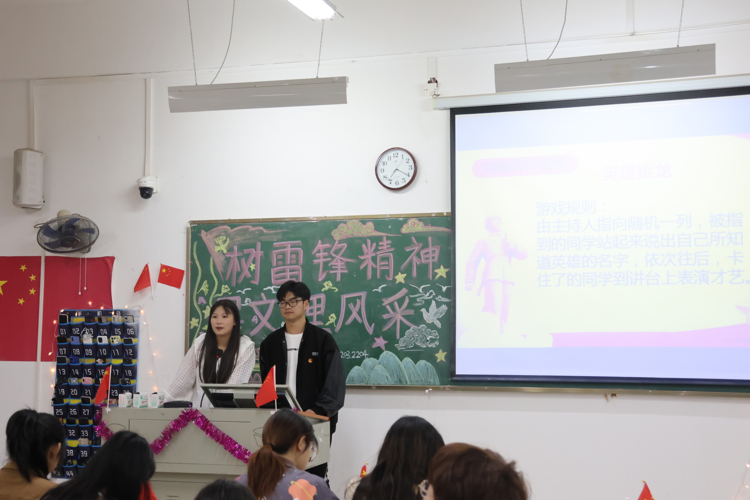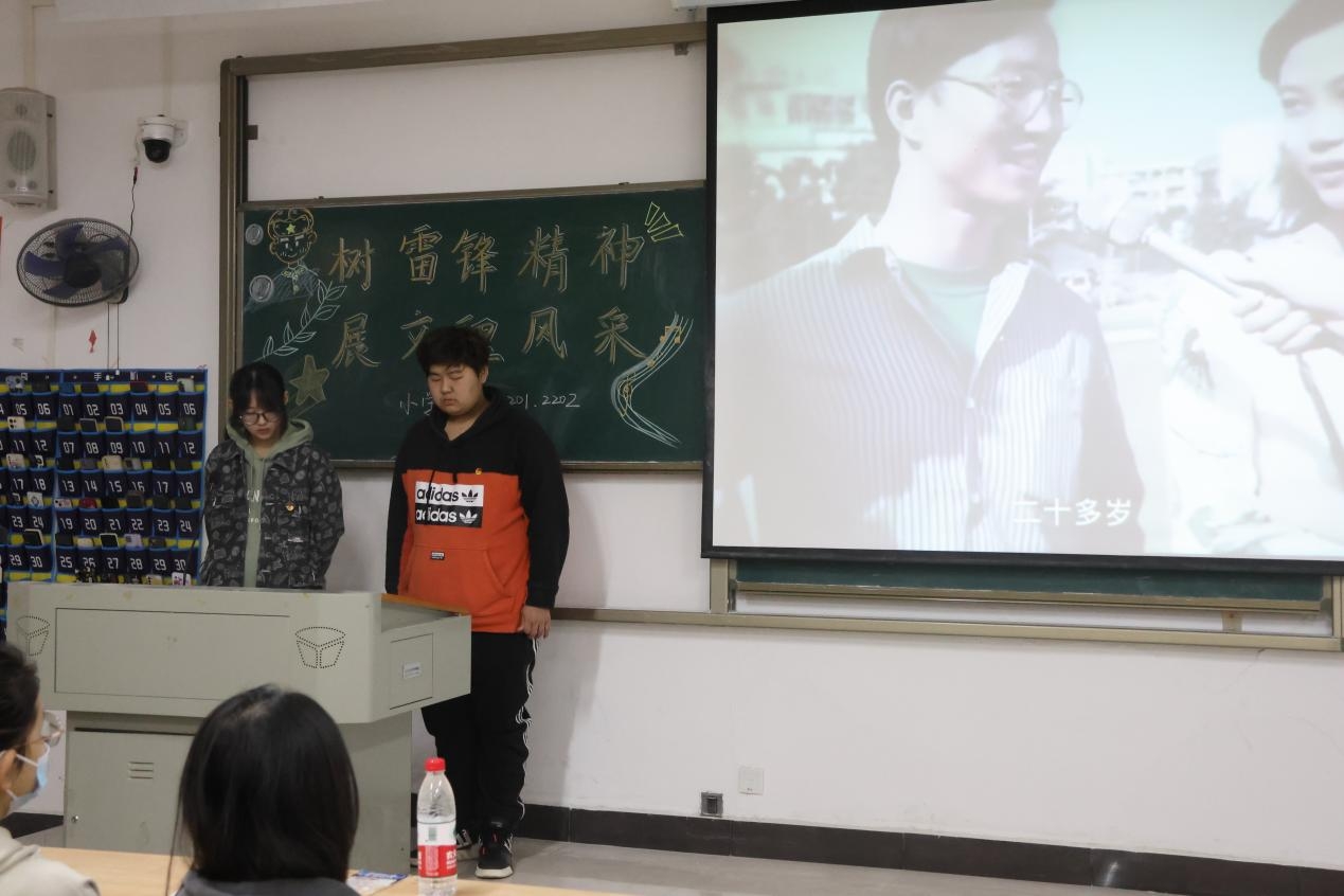 各班主持人通过播放相关视频、朗诵诗歌等形式,带领同学们学习雷锋精神内涵和意义,引导同学们坚定理想信念,将理论与现实相结合,把雷锋精神贯彻到生活的每一方面,为民族复兴的中国梦注入青春力量。