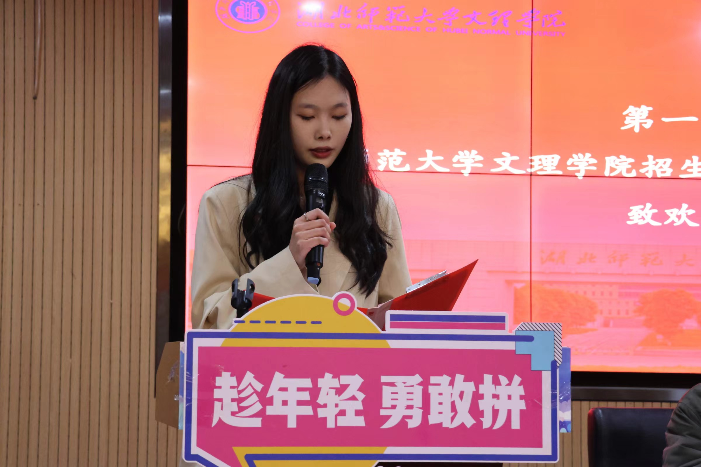 会议第一项,乐鱼(中国)学生工作部招生宣传媒体中心负责人杨洲致欢迎词,她对湖北师范大学团学骨干表示欢迎与感谢,同时表明交流会能为两校提供一个相互交流相互学习的机会,促进两校学生组织进步与成长,希望通过本次活动能真正的加强学校学生组织管理制度,促使两校团学工作进一步发展。
