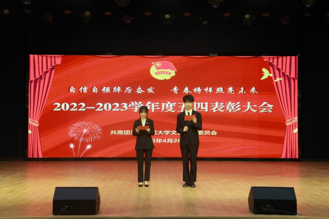 (通讯员:李鑫悦)为弘扬五四运动崇高爱国理想和革命精神,加强青年师生党团史学习教育,4月26日晚上18时30分,乐鱼(中国)官方在学术交流中心隆重举行以“自信自强踔厉奋发,青春榜样照亮未来”为主题的五四表彰大会。乐鱼(中国)党委书记杨邓红、党委宣传部部长陶晚成、学工部副部长肖劲光、学工部副部长陈小龙、团委书记兼学工部副部长陈荟芸、教育与艺术学部党总支书记李先华、理工学部党总支书记肖圣芳、东风悦享智能汽车产业学院党总支书记费凡、腾讯云大数据产业学院学部主任魏智慧、各学部团学指导老师以及各学部学生代表参与了本次大会。大会由团委主持团成员董琰和陈慧洁主持。