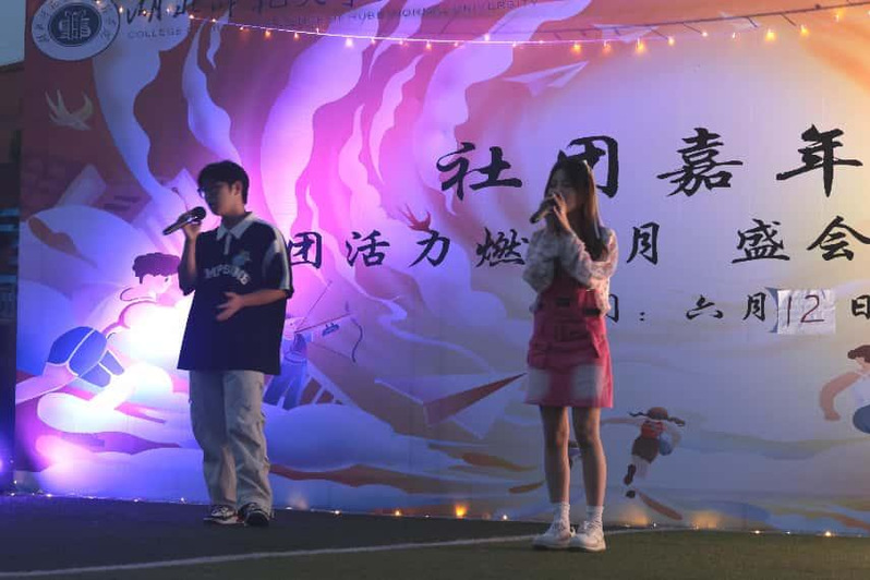 晚会主舞台上,社团节目同样精彩绝伦。风雅音乐社带来《第57次取消发送》、《素颜》、《达尔文》等歌曲,歌者们用充满感染力的嗓音点燃舞台;半夏次元社《无法定义的感情》中舞者们以灵动的身姿,将情感融入每一个旋转与伸展之中;茗沁茶艺社的《半盏清淮》,在一斟一酌间尽显东方雅韵;HOTFIVE舞蹈社《Hands up》活力四射,舞者们踏着动感的节奏,以激情诠释青春的热血。
