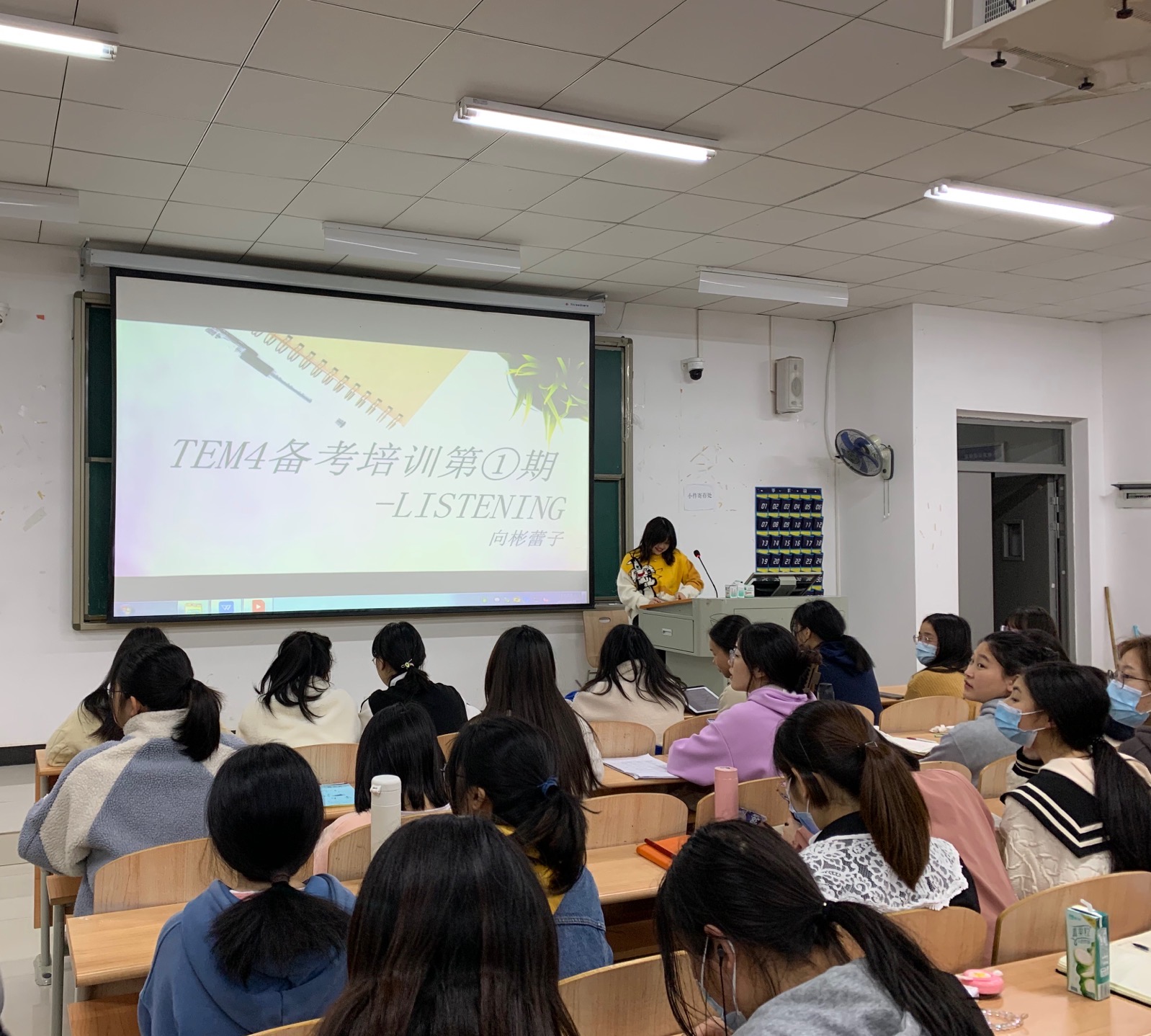 为了帮助乐鱼(中国)官方英语、商务英语专业大二学生更好地迎接专四考试,人文学部英语组老师于4月1日晚上六点半开展了专四辅导讲座之听力篇,主讲人向彬蕾子老师主要从题型分值、听力技巧和学习建议三个层面给学生们进行讲解。讲座生动实用,学生一致好评。衷心祝愿学生们都能在专四考试中取得满意的成绩!