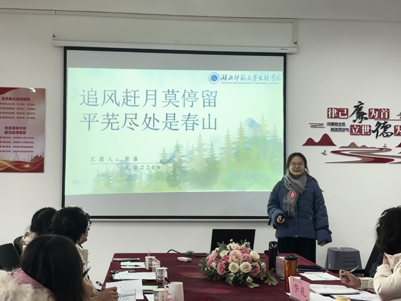 20241212日下午,在学部党总支书记周景斌的精心组织下,人文学部在3号实验楼508会议室举行了课前十分钟演讲比赛,来自人文学部各专业班级的11名选手参赛,全体辅导员担任本次比赛评委。