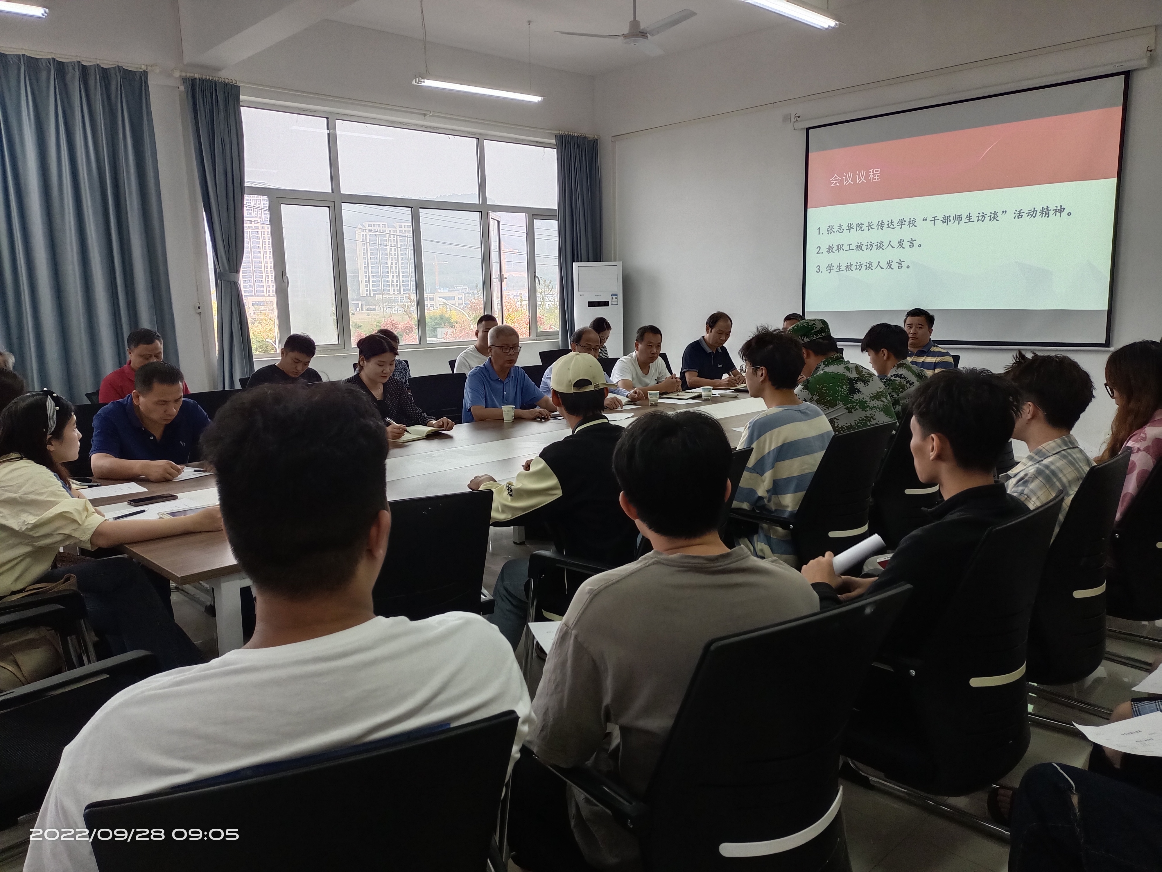 2022年9月28日上午,在理工学部会议室召开了干部师生访谈座谈会,张志华院长,张少武主任,许涛部长,李小林部长和理工学部访谈领导和被访谈师生参加了此次会议。会上师生对于学校校园环境,教学质量,教材选定,培养方案以及校园设施等多方面提出了意见和建议,张院长和相关部门领导针对师生提出的问题一一解答,并把对问题解决方案的进度情况告知师生,让师生能安心工作和学习。