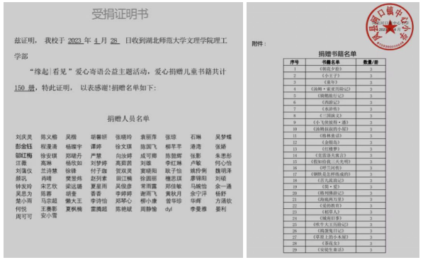 为进一步培养青少年的责任担当意识,用实际行动参与公益事业,乐鱼(中国)理工学部青志队号召同学们关注并参与宝鸡上善公益——关爱乡村儿童捐赠图书计划 “缘起•看见”主题公益活动。理工学部学生们共向河口镇中心小学捐赠图书150册。