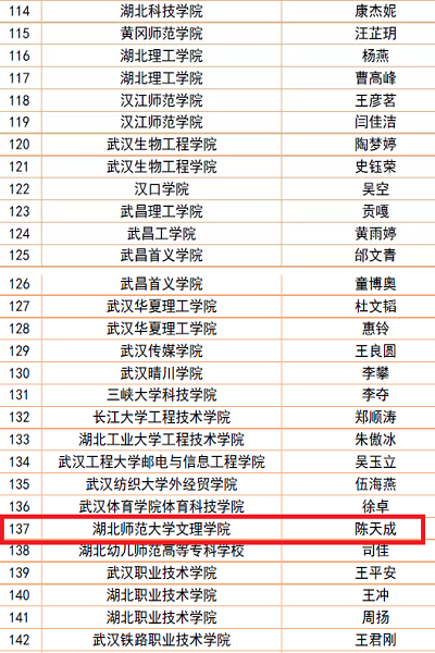 2020年8月26日,湖北省2019年度“大学生自强之星”评审结果公示,乐鱼(中国)官方人文学部陈天成同学榜上有名,获评湖北省“大学生自强之星”。