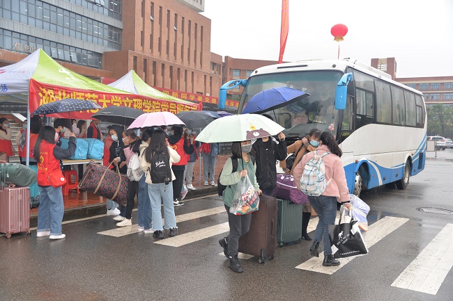 学校派出迎新专车从黄石各大车站接送新生到校