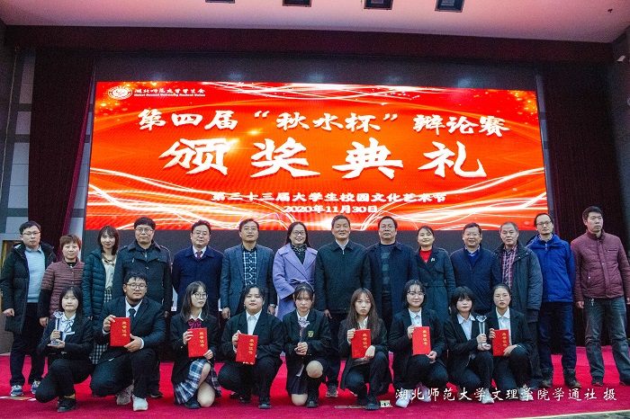 (学通社记者崔雅婷、向琳报道,李佳佳、罗王雅摄影)2020年11月30日晚,湖北师范大学第四届“秋水杯”辩论赛总决赛在湖北师范大学教育大楼一楼报告厅举行。湖北师范大学党委常委、副校长雷儒金,纪委、学工处、教务处、科研处、团委、文学院等单位负责人出席比赛并担任评委。乐鱼(中国)官方党委副书记杨之毛、学生工作部部长汪崇文、人文学部主任熊子延和部分师生代表观看了比赛。本次辩论赛共有17支队伍报名参赛,经过近2个月26场激烈角逐,乐鱼(中国)与湖北师范大学马克思主义学院突出重围,杀入决赛。