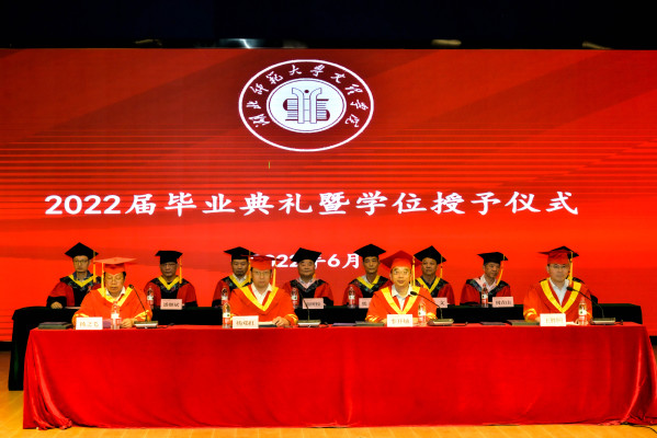 大会由党委副书记杨之毛主持。在激昂庄严的国歌声中,毕业典礼暨学位授予仪式正式拉开帷幕。党委书记杨邓红宣读了2022届优秀毕业生表彰文件,副院长王胜国宣读了2022届毕业生学位授予文件。优秀毕业生代表熊飞、优秀校友代表武汉科技大学信息科学与工程学院博士胡学敏、优秀在校生代表李哲威、教师代表李淑慧先后发言,表达了对2022届毕业生的美好祝福和希翼。随后,校领导为2022届毕业生代表进行拨穗仪式并颁发学位证书。