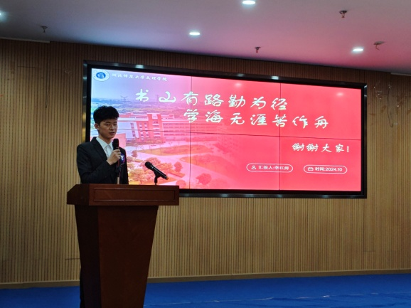 参与国家奖学金竞选的15位同学依次登台进行演讲,他们全面而生动地展现了自身在思想深度、学习成绩、综合素质以及实践经历等方面的卓越成就。有的同学勤勉好学,各科成绩在本专业均名列前茅;有的同学则积极投身于社会实践,参与各类志愿服务活动;有的同学踊跃参加各类竞赛,斩获国家级大奖。总的说来,14位国家奖学金候选人各有所长,他们在学术竞赛、社会实践等方面体现出文理学子充分利用学校平台,脚踏实地践行“有理想、敢担当、能吃苦、肯奋斗”的理想信念,展现了文理学子自信自强、刚健有为的精神风貌,为广大青年学子树立了学习的标杆。