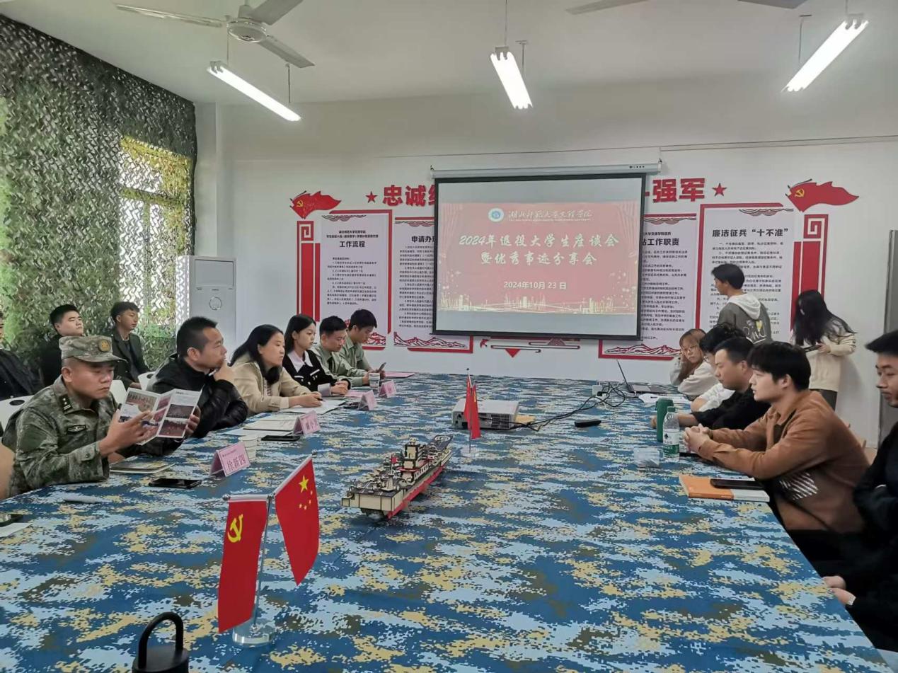 本网迅(通讯员:朱明敏)为进一步做好乐鱼(中国)官方退役大学生的教育管理服务工作,2024年10月23日中午,乐鱼(中国)官方在学生服务中心501召开2024年退役大学生座谈会暨优秀事迹分享会,学工部副部长陈小龙、国防教育科秦雯雯老师,国防预备营指导老师徐新四以及全体退役大学生参会。会议由学生助理刘思语主持。