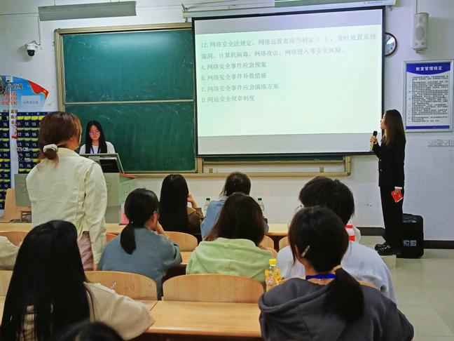 时值第十个国家安全教育日 ,人文学部于4月15日晚19时在1A204教室举办“全民国家安全教育,走深走实十周年”主题知识竞赛,以赛促学推动总体国家安全观深入人心。在人文学部党总支的组织安排下,人文学部学生支部支委鲍梦婕、李进双、冯婷等踊跃参赛。