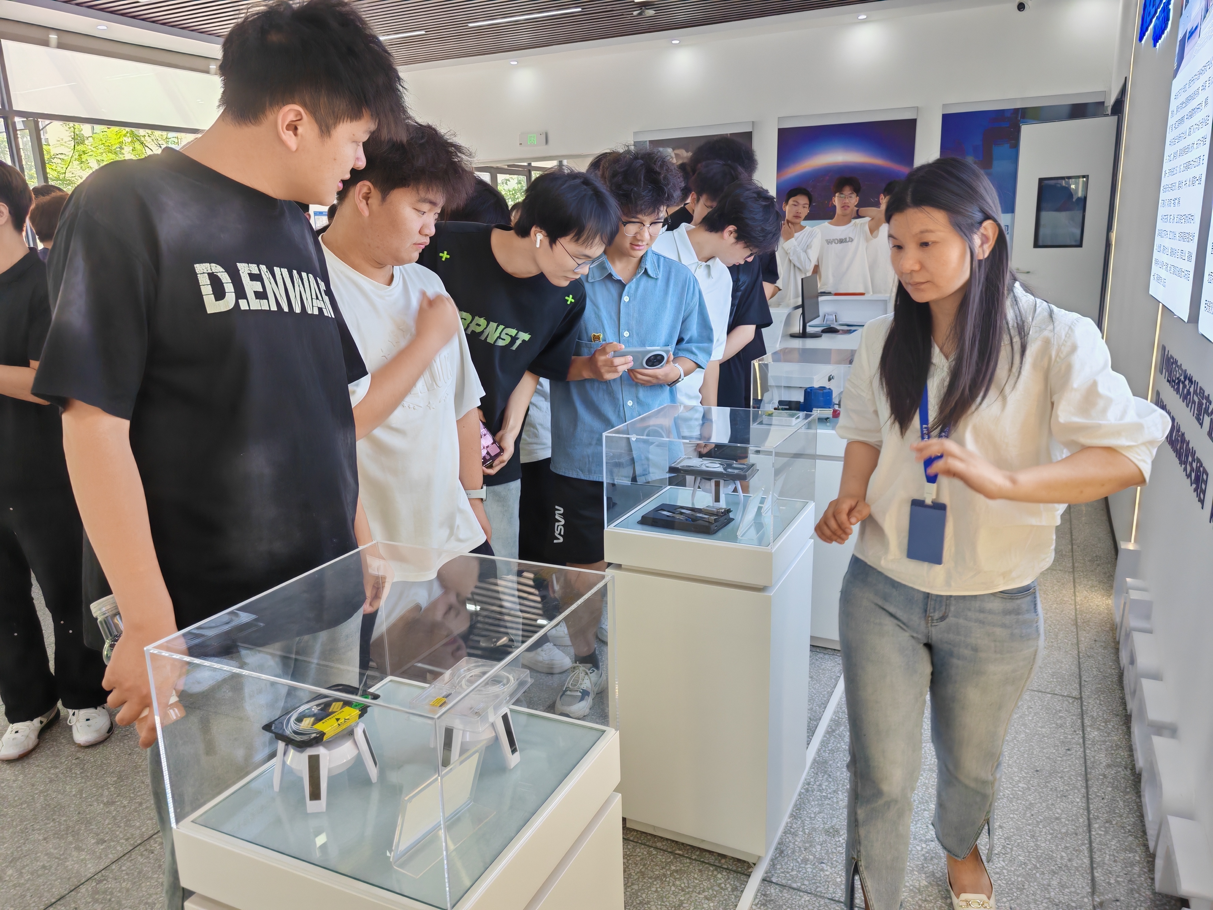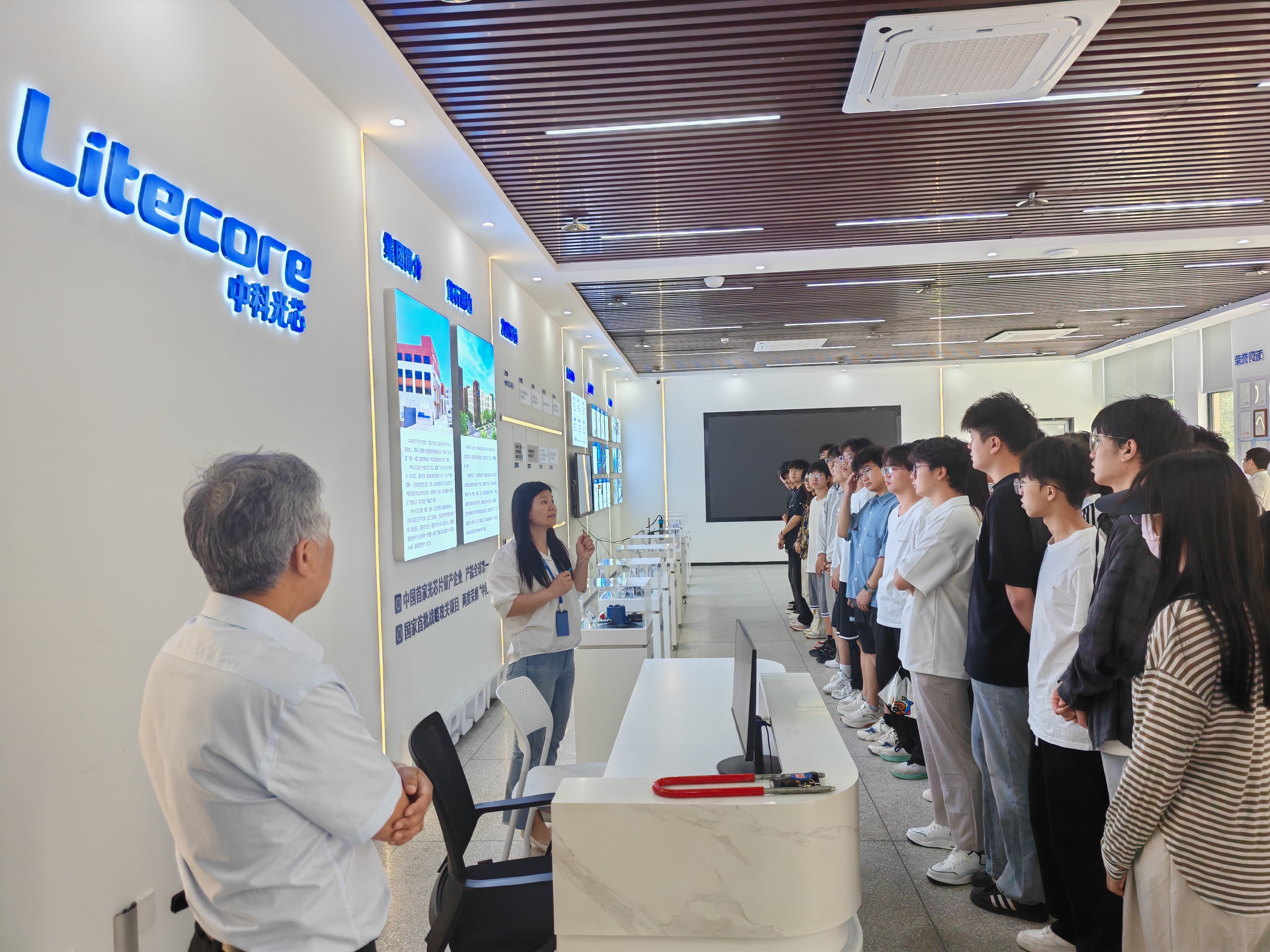 抵达企业后,人事杜经理热情接待了师生一行。在企业展厅,杜经理详细介绍了中科光芯的创始人苏辉博士。苏博士深耕光芯片领域多年,凭借卓越的科研能力和创新精神,带领团队创立了中科光芯,立志打破国外技术垄断。谈及企业愿景,公司始终以 “成为全球最有影响力光芯片企业” 为目标,不断追求技术突破与创新发展。