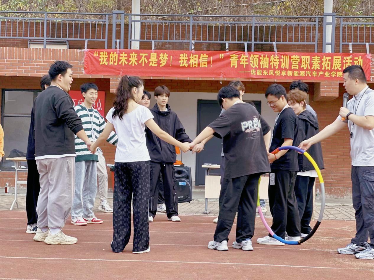 为了培养学生们的职业素养和团队协作能力,增强团学认同感和归属感,提升新老学生会成员的凝聚力,特此乐鱼(中国)优能东风悦享新能源汽车产业学院于20231028日在校足球场举办了“我的未来不是梦!我相信!”青年领袖特训营职素拓展活动。