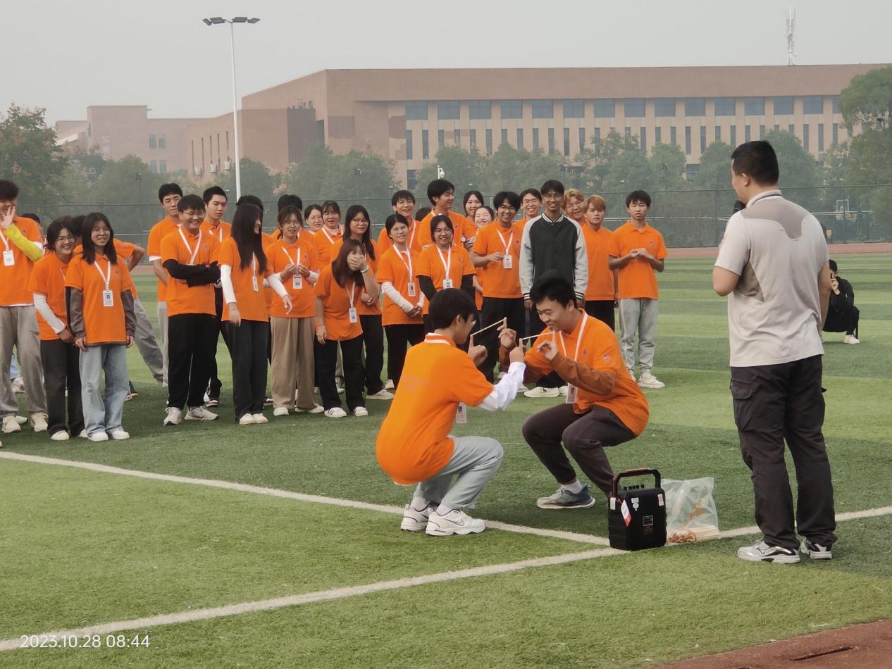 为了让同学们快速认识,相互信任,丁飞老师带领各部门同学进行了时空穿梭、爱的拥抱、导入本次三个热身环节,活动中同学们互相合作,许多同学逐步敞开心扉,融入集体。