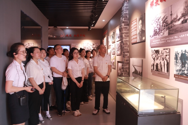 在纪念馆正厅,镌刻着彭德怀、李灿等老一辈革命家创建红三军团英勇事迹的巨型浮雕庄严肃穆。面对鲜红党旗,全体党员同志整齐列队,以铿锵有力的誓言重温入党誓词,声声回响震撼人心。随后,大家系统参观了红三军团建军展览馆、红色收藏馆,通过珍贵史料、历史影像、革命文物等展陈,深切感悟革命先辈自力更生、艰苦奋斗的崇高精神。