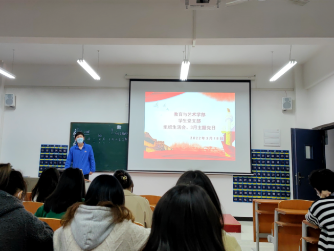202231818:15,教育与艺术学生党支部在实验楼1-403召开2021年组织生活会。会议由学生党支部书记尹誉霖主持,学生党员共计65名参加了线下会议。