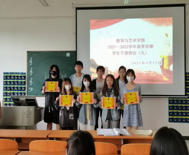 2022422日中午1200,教育与艺术学部按照惯例在实验楼一栋403多媒体教室组织召开学生干部工作例会。出席本次例会的有辅导员、团学会干部及各专业班级班长。会议由党总支书记李先华主持。