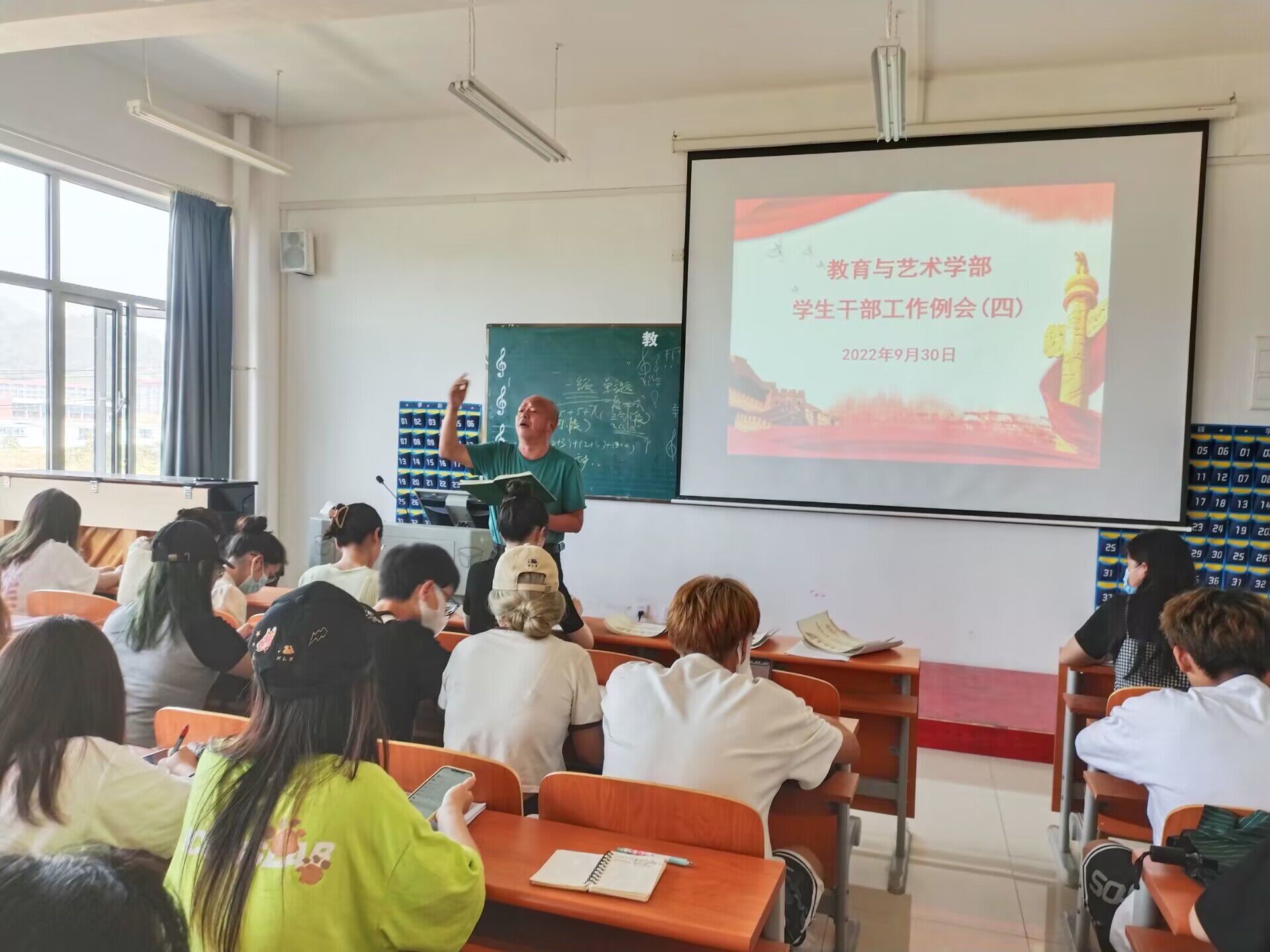 2022年9月30日12:00,在实验楼1-403多媒体教室召开学生干部工作例会,全体辅导员、团学会干部,及各专业班级负责人参加例会。学部总支书记李先华主持本次会议。