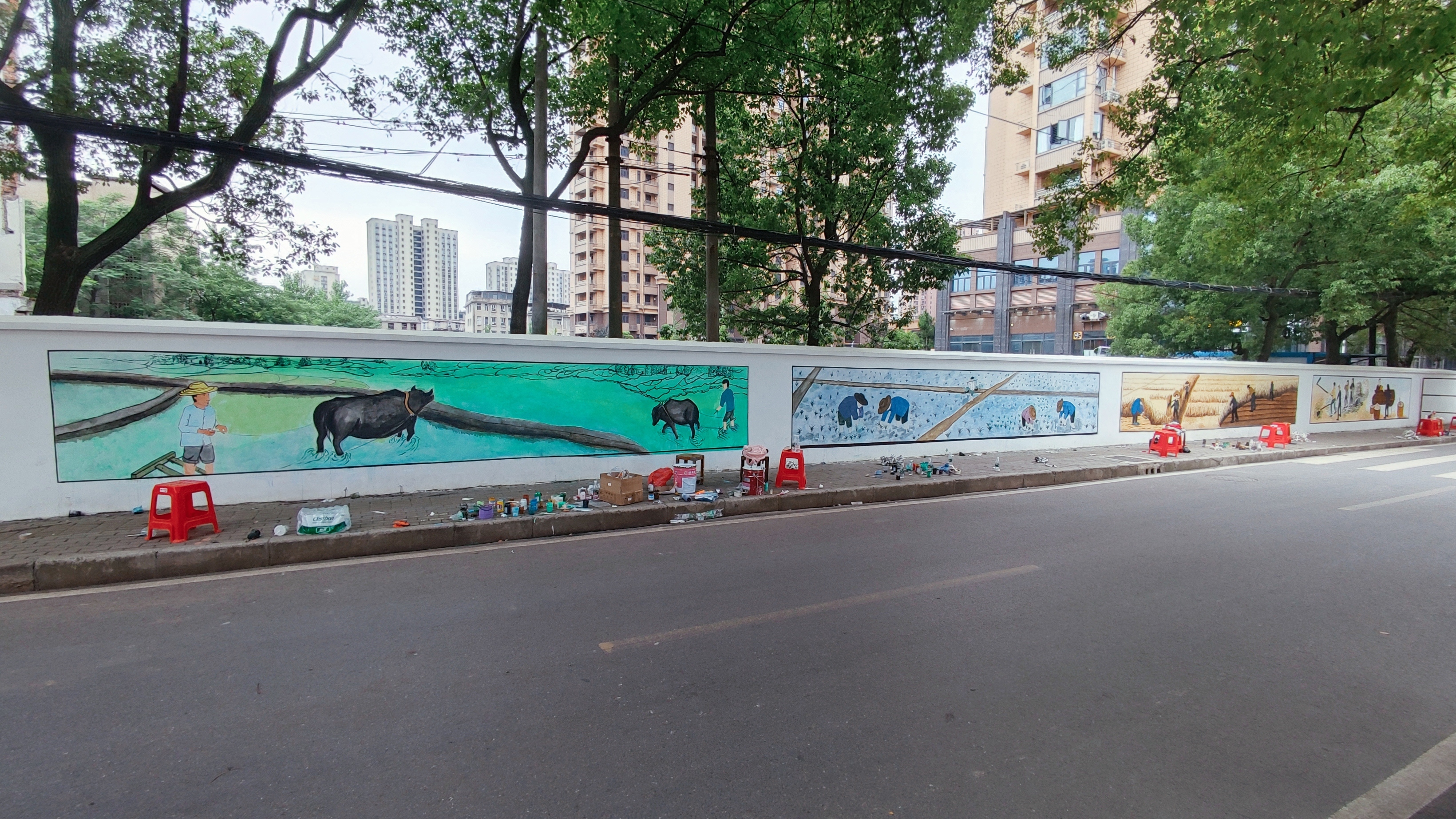 21名师生,纷纷手拿画笔,在一片欢声笑语中,展示各自的才华。经过长达10个小时的绘画,将一面40余米长的围墙绘画文化墙。绘画的内容以花湖农场历史文化为主,将四季更迭与农场文化相辉映,用墙面彩绘的形式展现春耕、夏种、秋收、冬藏的农耕文化。既美化了花湖路,又较好地保存了花湖农场的历史文化,经过美化后的文化墙,使花湖路增色,成为一道美丽的风景线。 通过此次活动展现了乐鱼(中国)教育与艺术学部美术学专业的独特魅力,同时,为共建和谐社区,共享美好生活贡献一份力量。