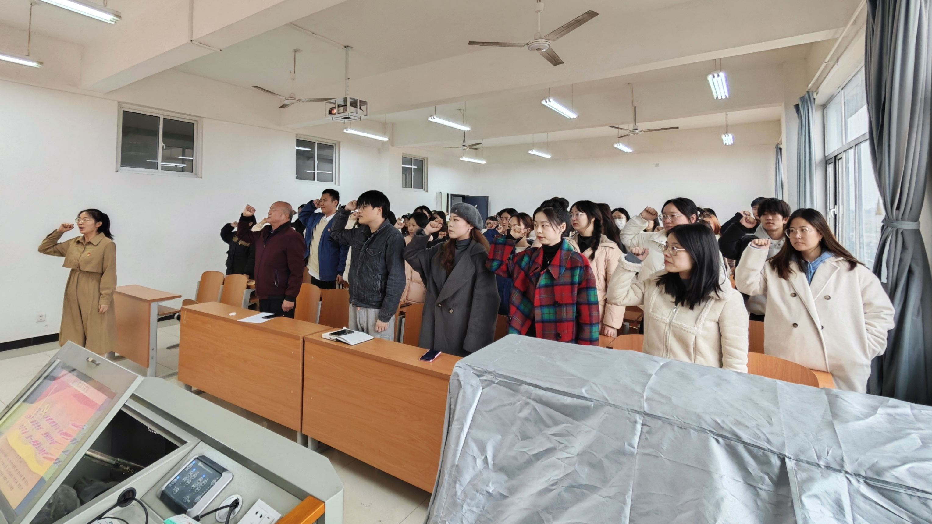 最后,与会党员孙盼蕊老师带领全体与会党员在党旗下庄严宣誓。支部会议取得圆满成功。