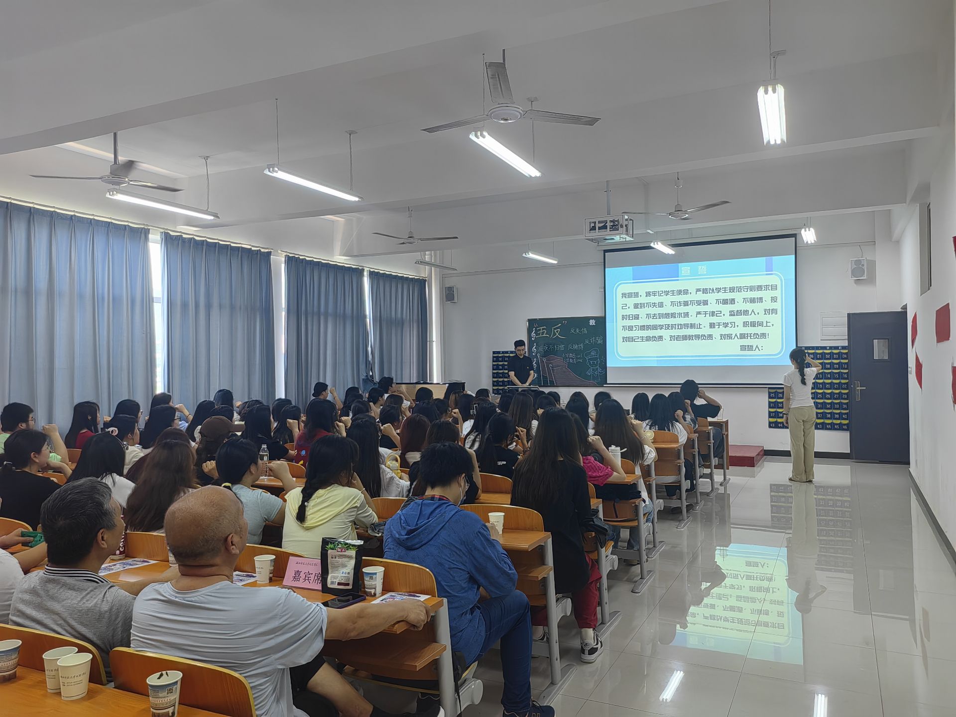 为进一步增强学生的安全防范能力,保障学生生命财产安全,使反诈骗、反失信、反酗酒、反赌博、反夜不归宿及防溺水等安全意识深入人心,按学生工作部的工作安排,5月24日下午2:30,23级小学教育专业组织开展题为“筑起‘五反一防’高墙,共保平安和谐校园”主题示范班会。