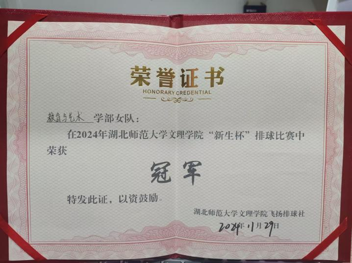 11月13日—29日历经半个月的“2024届排球新生杯”比赛落下帷幕,最终,教育与艺术学部女子排球队凭借出色的团队配合和顽强的拼搏精神,摘得本次新生杯冠军。